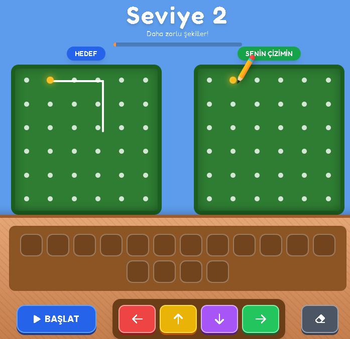 Sıfırla Seviye 1 Daha zorlu şekiller! HEDEF SENİN ÇİZİMİN BAŞLAT 🎉 Harika! Seviyeyi tamamladın. Sonraki…