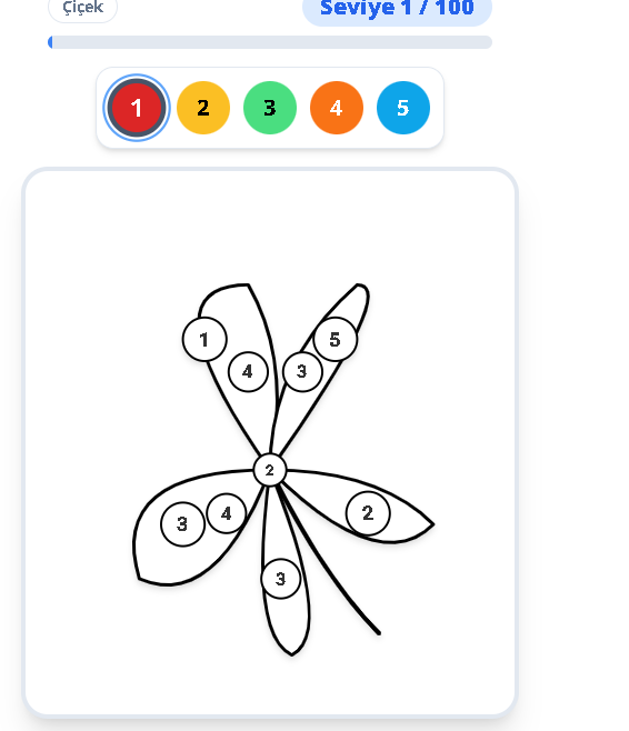 Sayılarla Boyama Oyunu TEBRİKLER! 100 Seviyeyi Tamamladın! Baştan Başla Yükleniyor... Seviye 1 / 100 Süper!…