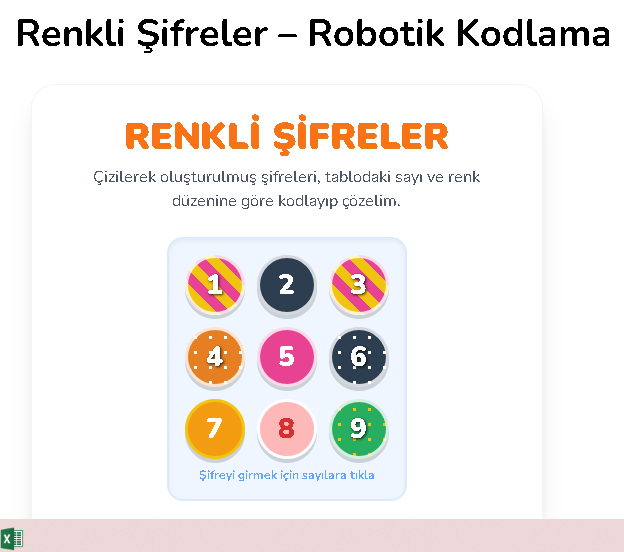 Renkli Şifreler Oyunu RENKLİ ŞİFRELER Çizilerek oluşturulmuş şifreleri, tablodaki sayı ve renk düzenine göre kodlayıp…